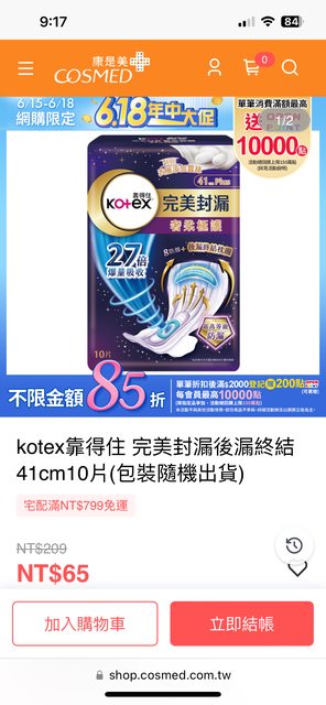 康是美今天開始網站有85折優惠,幫家人買時發現它的靠得住完美封漏41公分的特別便宜。