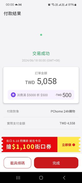 : 但還是6/18感覺得比較優一點 : 券折下來大約10% : 一樣先搶先贏,但要注意時間 : http://i.imgur.com/RJDfihb.jpg