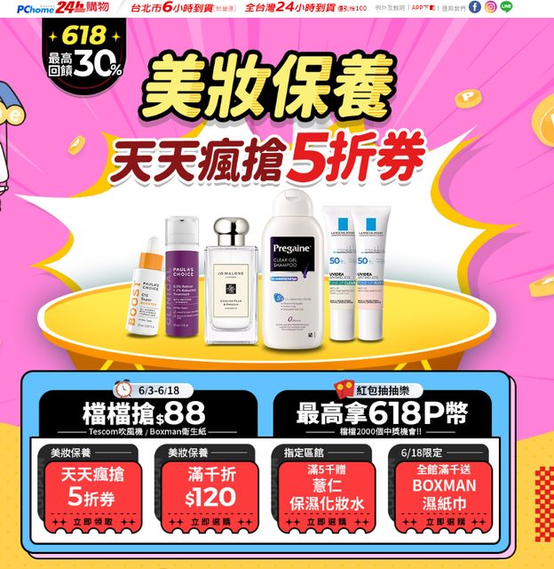 今天618美妝幫大家整理一下PChome和momo的活動