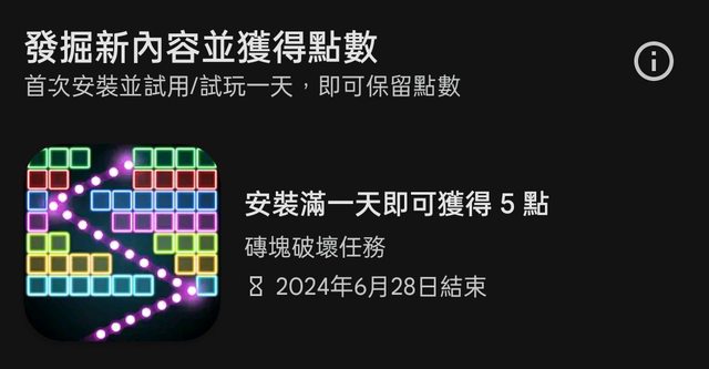 安裝滿一天即可獲得5點