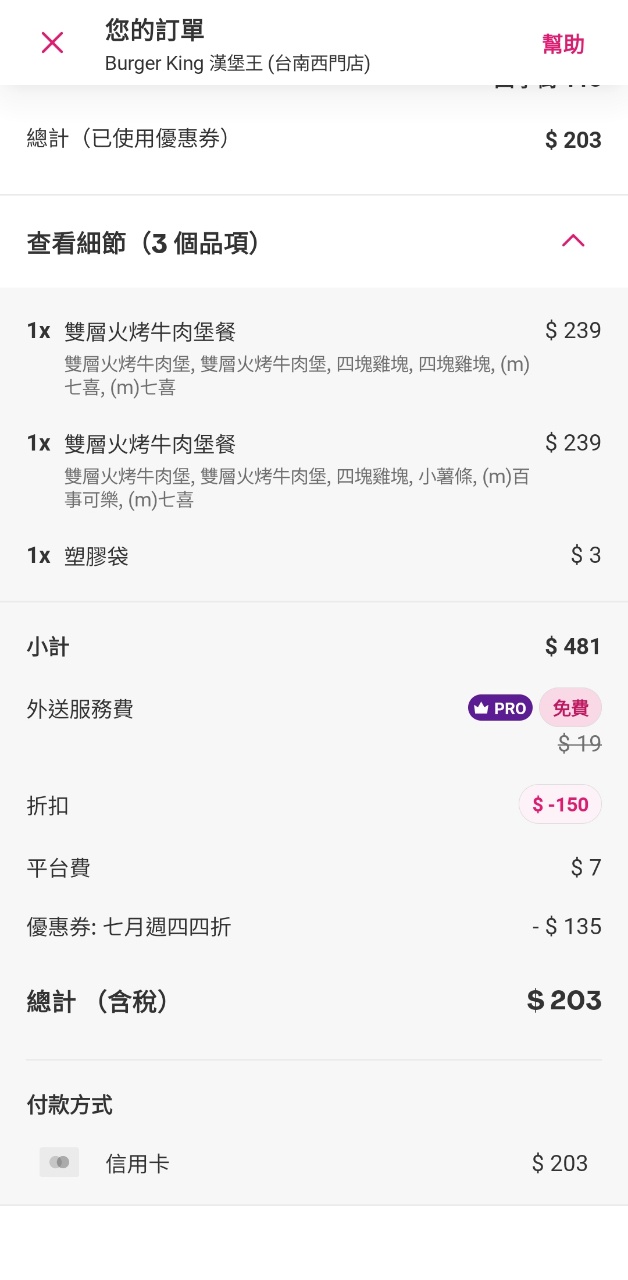 推 color345: 我沒有pro,買三份辣華堡餐+塑袋,250還可 101.12.93.149 07/04 19:36