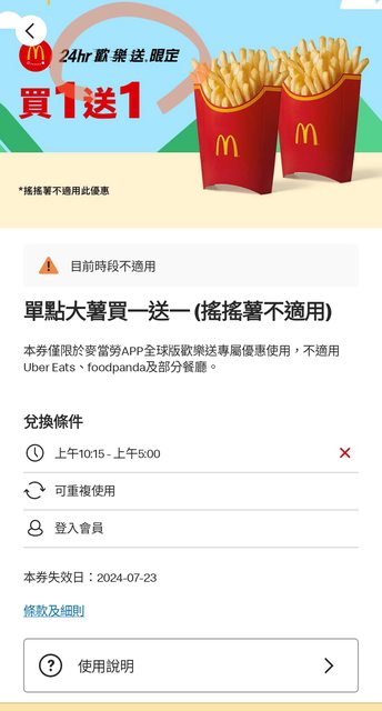 推 nonpeople: 優惠只限歡樂送 點餐機/歡樂送都不適用 61.216.126.140 07/21 11:09