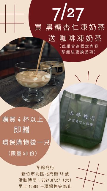 7/27,買黑糖杏仁凍奶茶(75)送咖啡凍奶茶(75)
