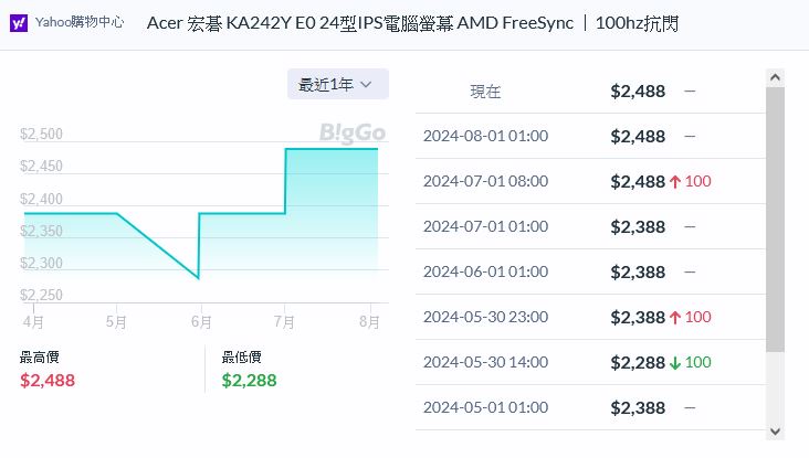 Acer 宏碁 KA242Y E0 24型IPS電腦螢幕 AMD FreeSync |100hz抗閃 https://reurl.cc/Nl6jz5 先領200券 https://reurl.cc/rv8xzE 折後$2288 這價格就能入手沒什麼毛病 嫌24太小的就略過吧 -- ※ 發信站: 批踢踢實業坊(www.ptt-web.org.tw), 來自: 180.217.23.26 (臺灣) ※ 文章網址: https://www.ptt-web.org.tw/Lifeismoney/M.1722594260.A.8C6