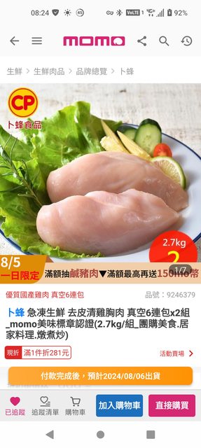 標題[情報] MOMO卜蜂雞胸肉2.7KGx2 999
