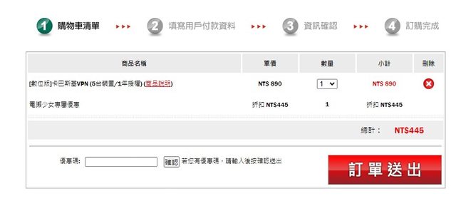 前陣子看電獺的折疊機新機影片發現到, 原來卡巴斯基也有推出VPN,而我自己本身已經有了IVACY VPN,但這個促銷還是相當划算 ,故來分享給大家。一年內可使用5裝置! 連結:https://reurl.cc/E68XkK 輸入優惠碼:KL24VAG https://i.imgur.com/zwn8KSi.jpeg