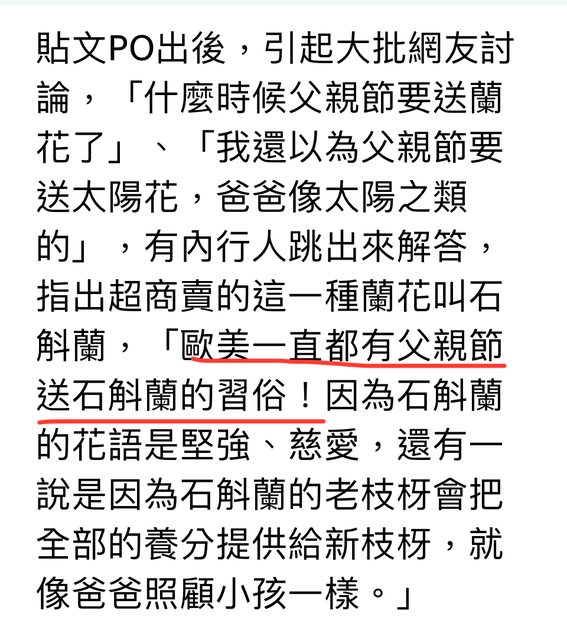 送康乃馨和石斛蘭都是從歐美來的,只是台灣男性節日不受重視… https://i.imgur.com/hGodOKe.png