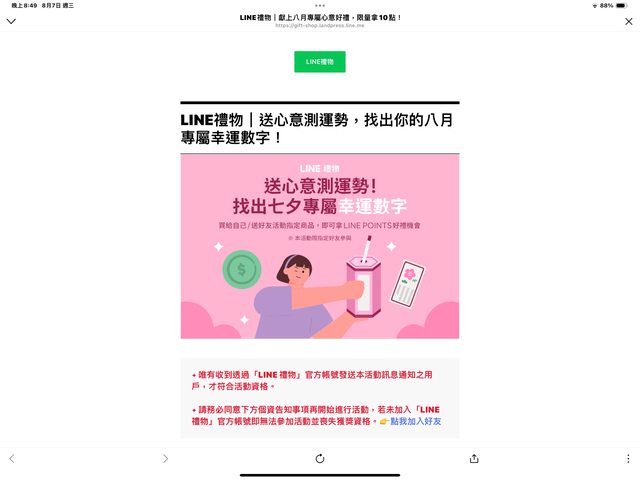 好像還可以參加line活動的抽獎 https://i.imgur.com/7OqS5D4.jpeg