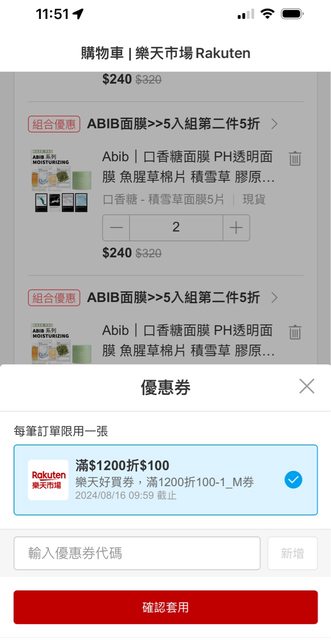 標題[情報] Abib面膜5入第二件五折