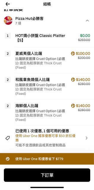 → TZUYIC: 要先有Uber One會員才能享有指定個人比薩101.137.120.167 08/10 12:59