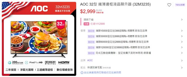 birdy590: 32吋大電視? 很多人螢幕就這尺寸吧 119.14.42.10 08/14 10:53