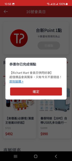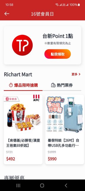 sam83710: 謝謝 已領 101.8.23.176 08/16 11:41