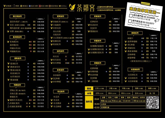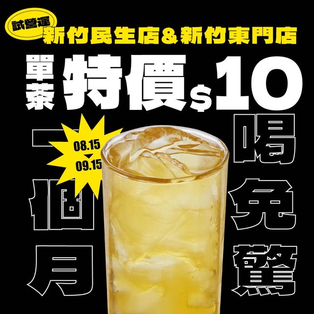時間 : 8/15(四)~9/15(日),10:30~22:00 地點 : 新竹市東區東門街137號 新竹市民生路104號1樓 優惠 : 西施紅茶,白毫綠茶,四季清茶,高山烏龍,烏龍清茶通通10元 理由 : 回饋所有支持他們的顧客 https://i.imgur.com/RLfoa5D.png
