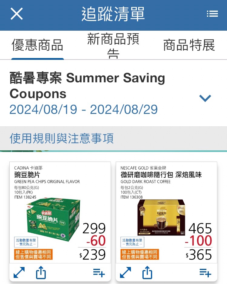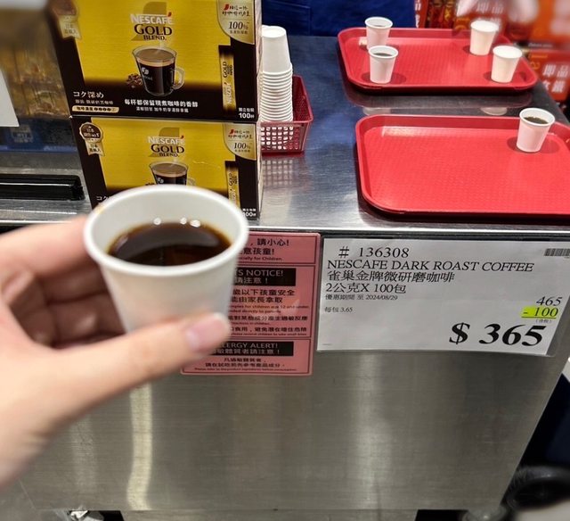 好市多目前雀巢金牌微研磨咖啡現折100元喔 100包總共365,算下來一包只要3.65元 現場也可以試喝,活動只到8/29 是深焙風味,喜歡濃郁咖啡的朋友可以參考一下 https://i.imgur.com/RmciXFb.jpeg