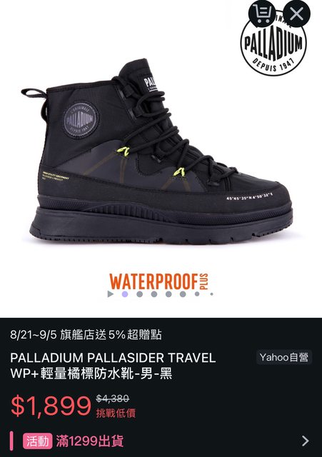 今天又突然暴雨 想說找找便宜的防水靴 P牌這雙沒下雨穿好像也不會怪怪der $1899送5%超贈點 算起來一雙$1805應該還行 https://reurl.cc/myZEK9 還有一款也是$1899 https://i.imgur.com/uYEvkA8.jpeg