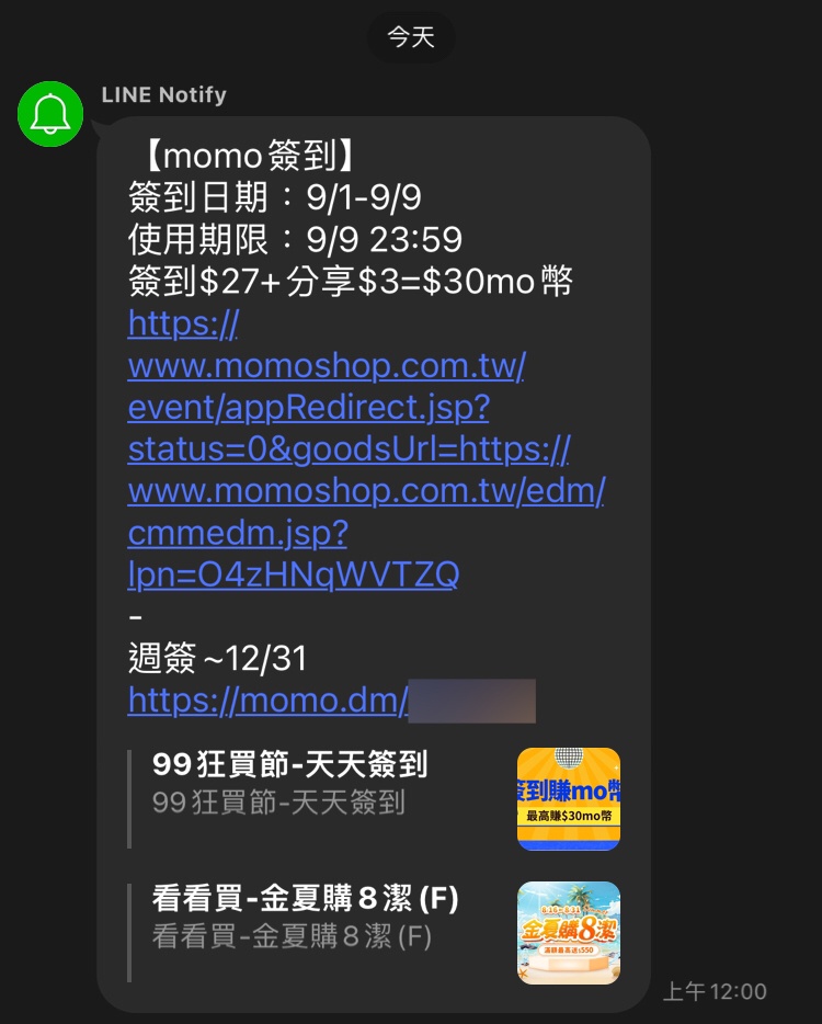 kkkk1234: 直接靠LINE Notify每天傳通知到群組 大 61.231.9.26 09/01 17:16