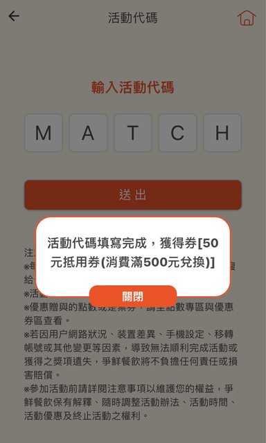 進入後需要輸入活動代碼 「MATCH」 https://i.imgur.com/gQ2fGmj.jpeg