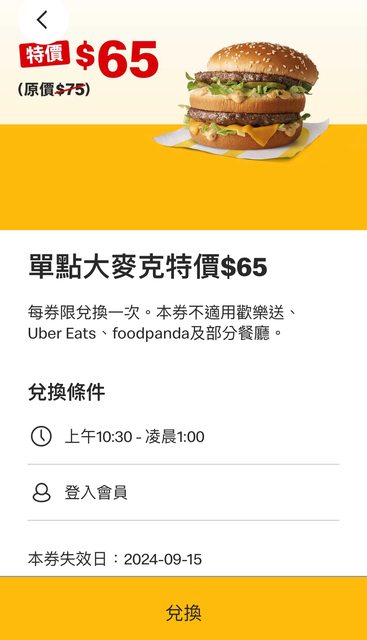18元~9/11,大麥克65元~9/15 搭配甜心卡跟優惠券比有比較划算? -- ※ 發信站: 批踢踢實業坊(www.ptt-web.org.tw), 來自: 111.125.132.90 (臺灣) ※ 文章網址: https://www.ptt-web.org.tw/Lifeismoney/M.1725889471.A.1A1