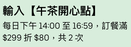 EggXBlueSky: 下午茶優惠是什麼啊! 42.70.67.183 09/12 15:06