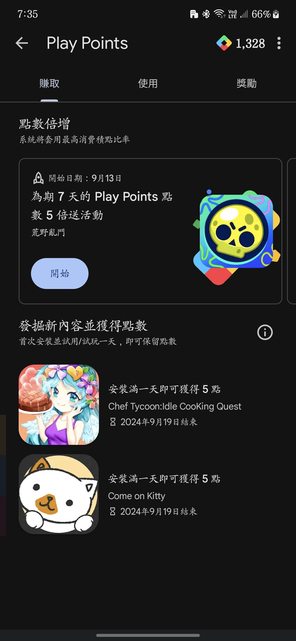 點選Play Points進入 安裝: Chef Tycoon:ldle CooKing Quest Come on Kitty 安裝滿一天即可獲各得5點 https://i.imgur.com/aE9e6cZ.jpeg