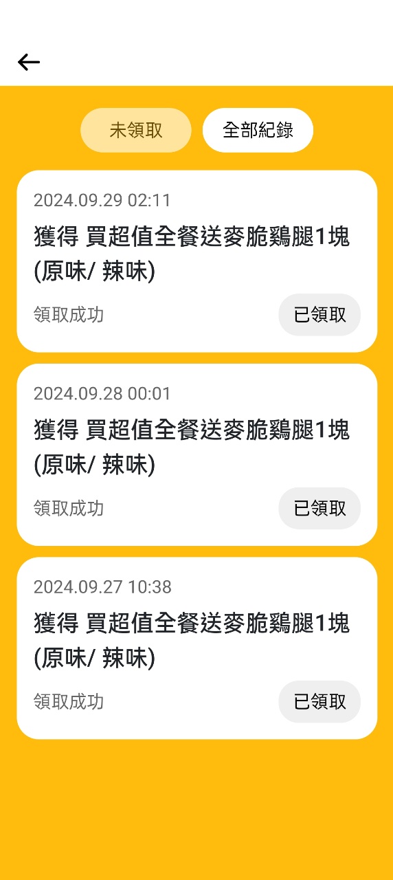 推 JoyceChien: 第二天也抽到送麥脆雞,好扯210.209.200.161 09/28 00:29