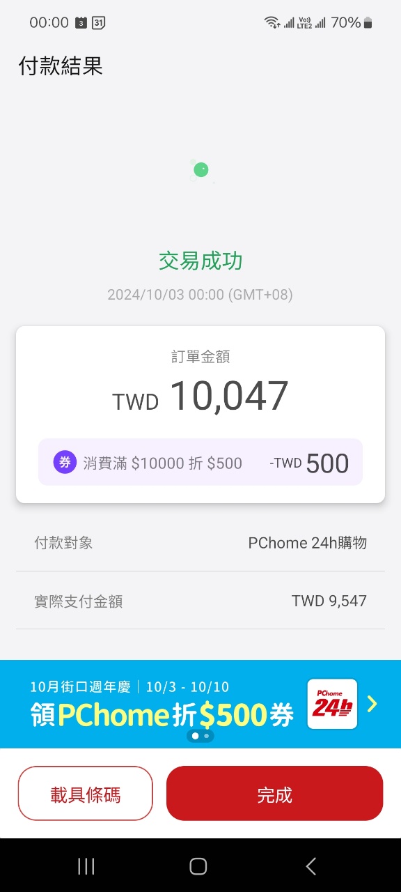 → TETUO: 沒用,原來電商可用就立刻用掉了,結帳畫 114.39.118.226 10/01 01:09