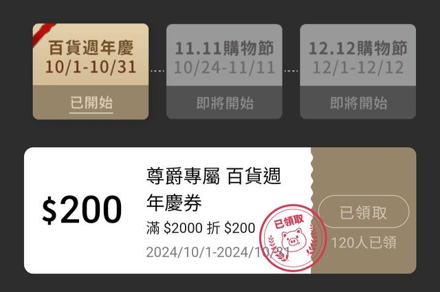 推 cutejoanna: 同樓上疑問,那他10/10號週年慶的券不 27.242.99.203 10/01 12:02