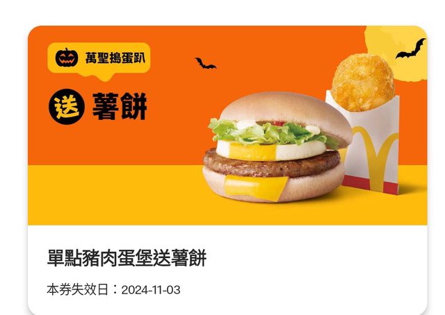推 fmsai3451: 加蛋滿福堡送薯餅 223.141.34.246 10/28 10:37