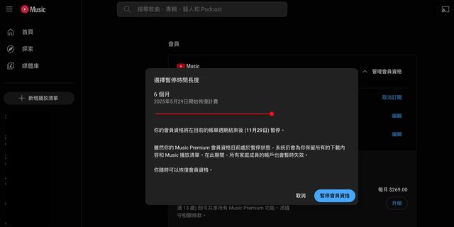 如果是選取消訂閱 > 改為暫停 > 暫停會員資格