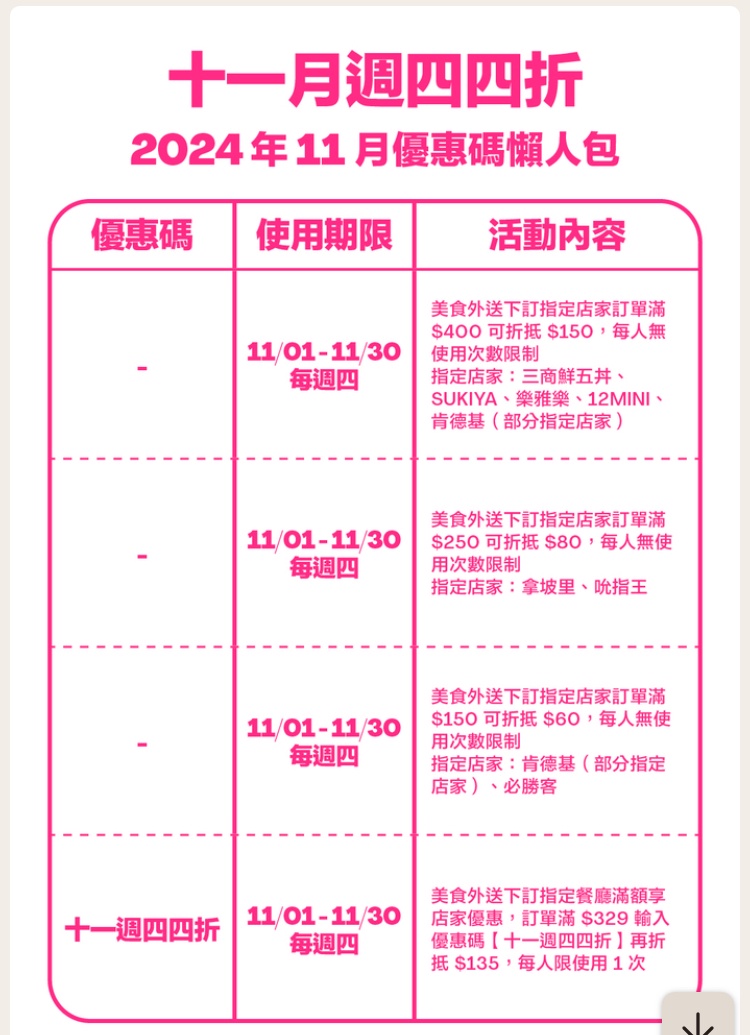 → Levi0012: 明天還能用,一直到1111都能用 36.233.58.150 11/01 12:47