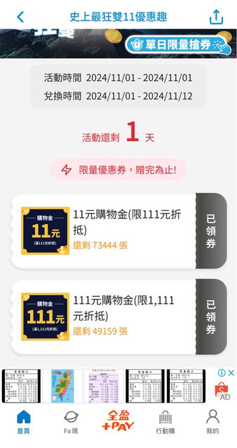 推 asd1214: 補充樓上資訊 使用全盈+pay是單筆滿300送 27.51.73.236 11/01 18:56