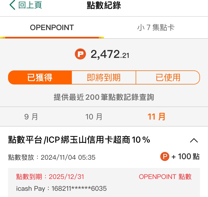 推 five8080: icash pay綁定玉山11月份贈點已於2024/142.78.229.125 11/04 13:31