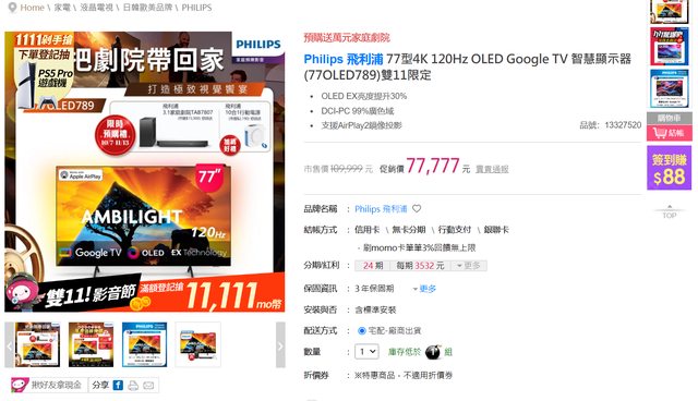 推 iouma4947: 77"的OLED 120hz 價格算蠻香的223.137.114.216 11/05 11:41