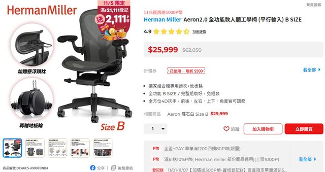 推 LIN8157228: 要注意看Aeron這種很便宜的都是平行輸 39.10.33.10 11/05 15:41