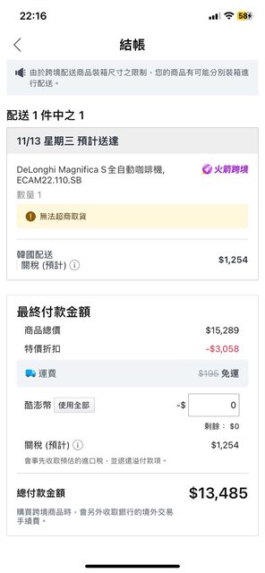 標題Re: [情報] 雙11 日本樂天Delonghi 咖啡機