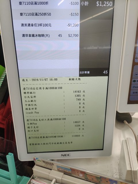 推 lich7711: 15組1500-250-150=1100,台新pay付1000 122.117.8.36 11/07 23:03