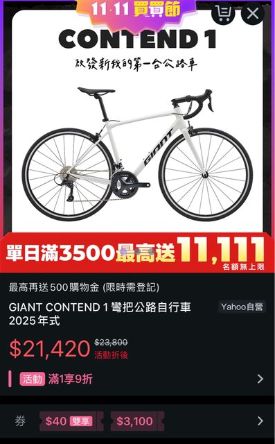 標題Re: [情報] 雙11 MERIDA & 捷安特自行車特價