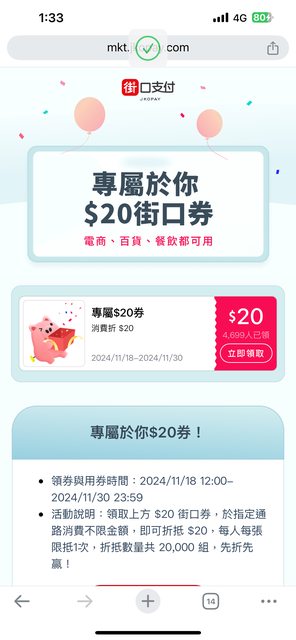 推 jack8923456: 已領,感謝 101.12.20.160 11/18 13:46