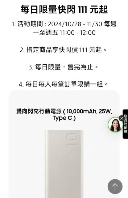 推 stevejack: 行動電源剛一度有搶到 結帳前被移除購 49.216.31.145 11/20 11:08