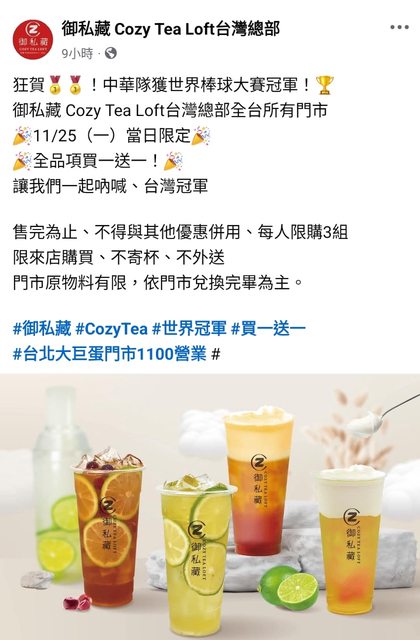 → Askalaphos: 乎買一送一挺台灣冠軍,很多非連鎖飲 111.83.169.161 11/25 10:55