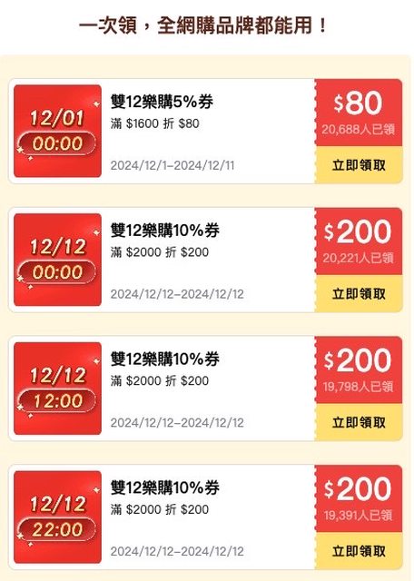 4.雙十二券可以領了