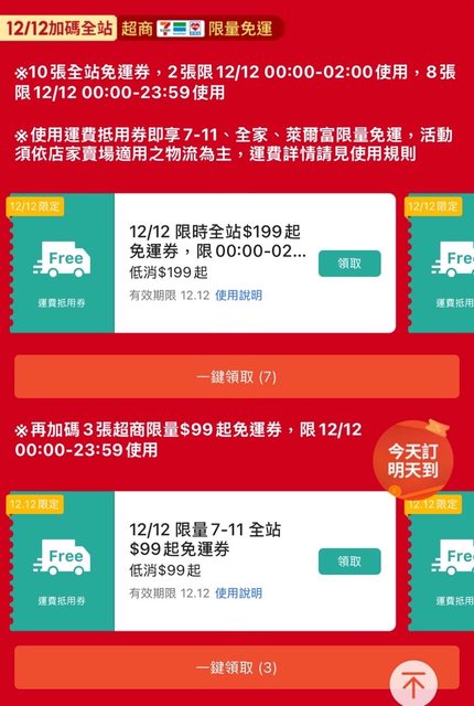 推 DragonRai: 蝦皮雙11全家取貨我拿到免費熱美式,沒 219.70.230.34 12/02 17:08