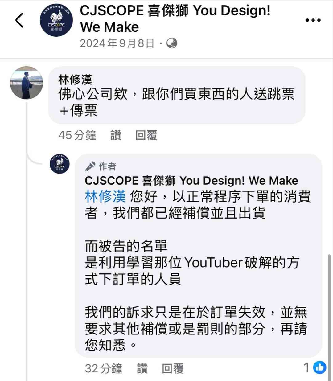噓 JCK0417 : 店家有自己的難處只好告消費者了 222.164.25.75 04/12 04:33