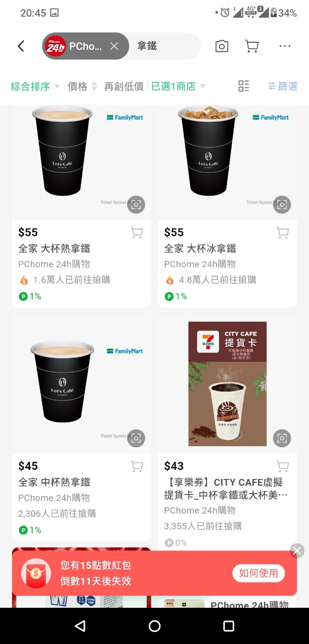 推 fongbb: Pc家買超商咖啡即享券不回饋不能用紅包 118.170.5.203 06/12 20:34