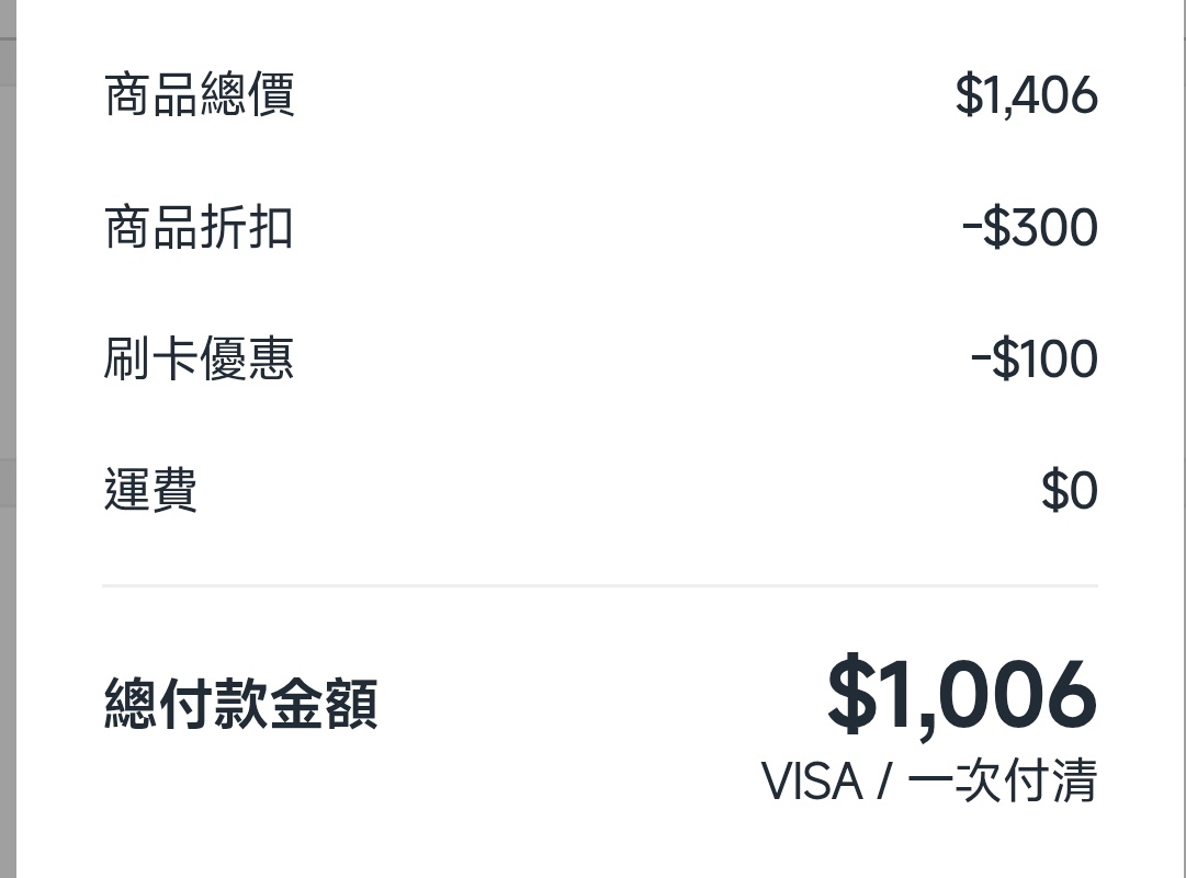 推 meow777: visa看到了,要到結帳頁面才有 122.254.21.160 06/18 04:00