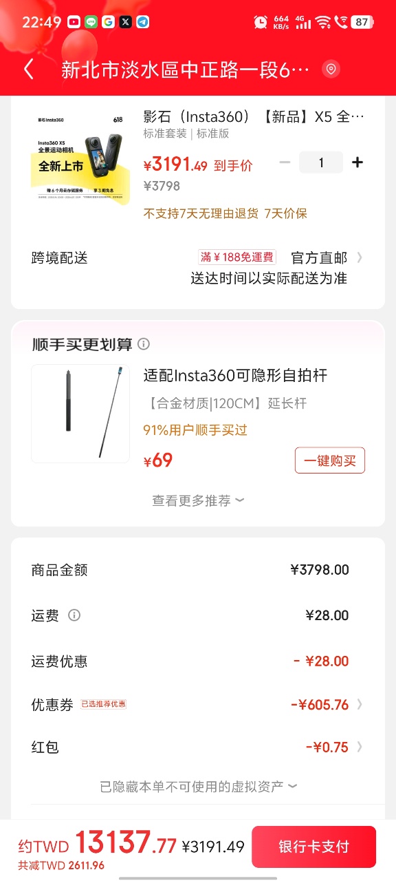 推 ste9140821: insta360 x5寄台灣的好像沒了QQ 飲恨 42.73.236.34 06/18 11:47