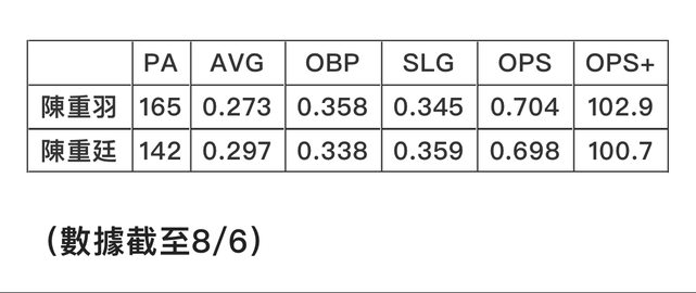 對比樂天雙雄所締造的輝煌戰功,生涯至今多有起伏、尚未兌現高順位天賦的陳重兄弟自