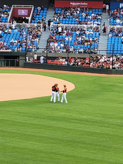 打招呼的外野三人