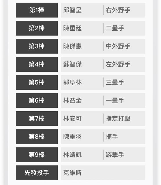推 tomlee1130: 球員名稱排起來很猛,希望打起來也是XDDDD08/31 17:35