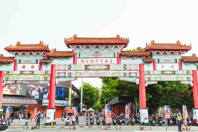 存在感強烈的入口。台南運動公園跟台南棒球場是隔壁鄰居,這點新莊也一樣。